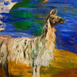 Laama lapissa/Lama i lappland, oil on canvas, 2010